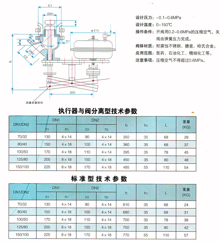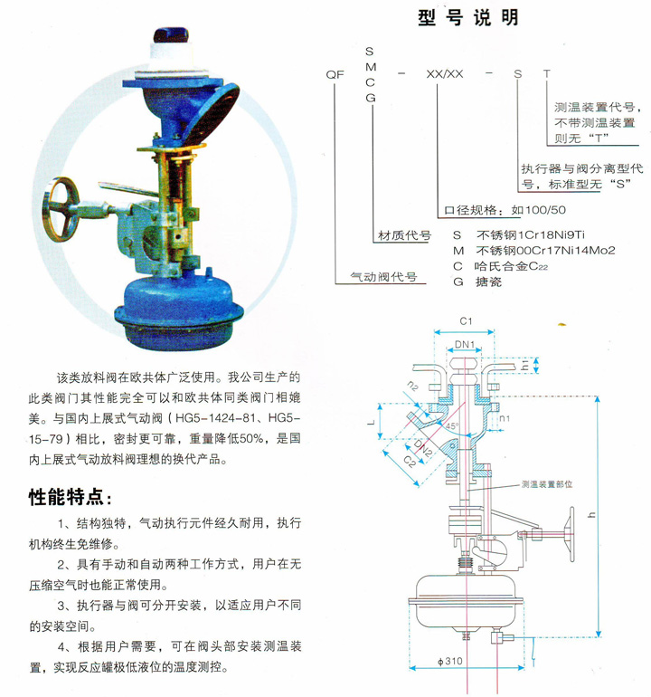OF系列放料閥依執(zhí)行器與閥不同分標(biāo)準(zhǔn)型和分離型兩種